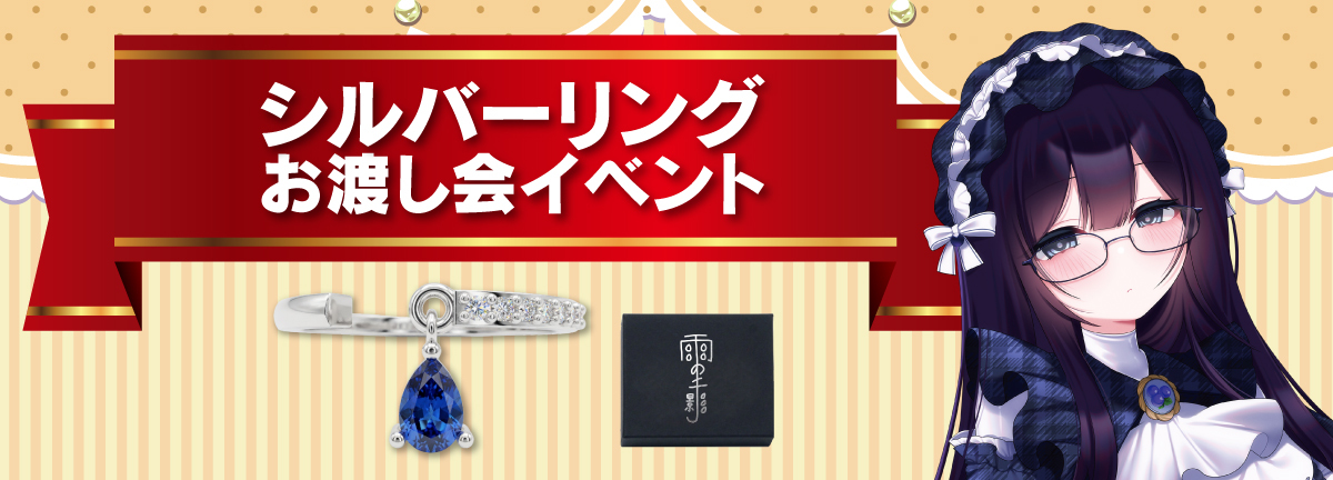 ■箱庭秕&真園あきら&雨野千影× 自遊空間コラボキャンペーン コラボ期間中、限定グッズを購入すると【箱庭秕様、真園あきら様、雨野千影様】にポイントが付与され、 それぞれのポイント総数で店舗に掲出される特典が豪華になっていきます! あなたの応援で自遊空間を【箱庭秕様、真園あきら様、雨野千影様】だらけにしちゃおう! ★お渡し会実施★ シルバーリングをご購入頂くと、特別イベントに参加できます! お渡し会についてはこちら |